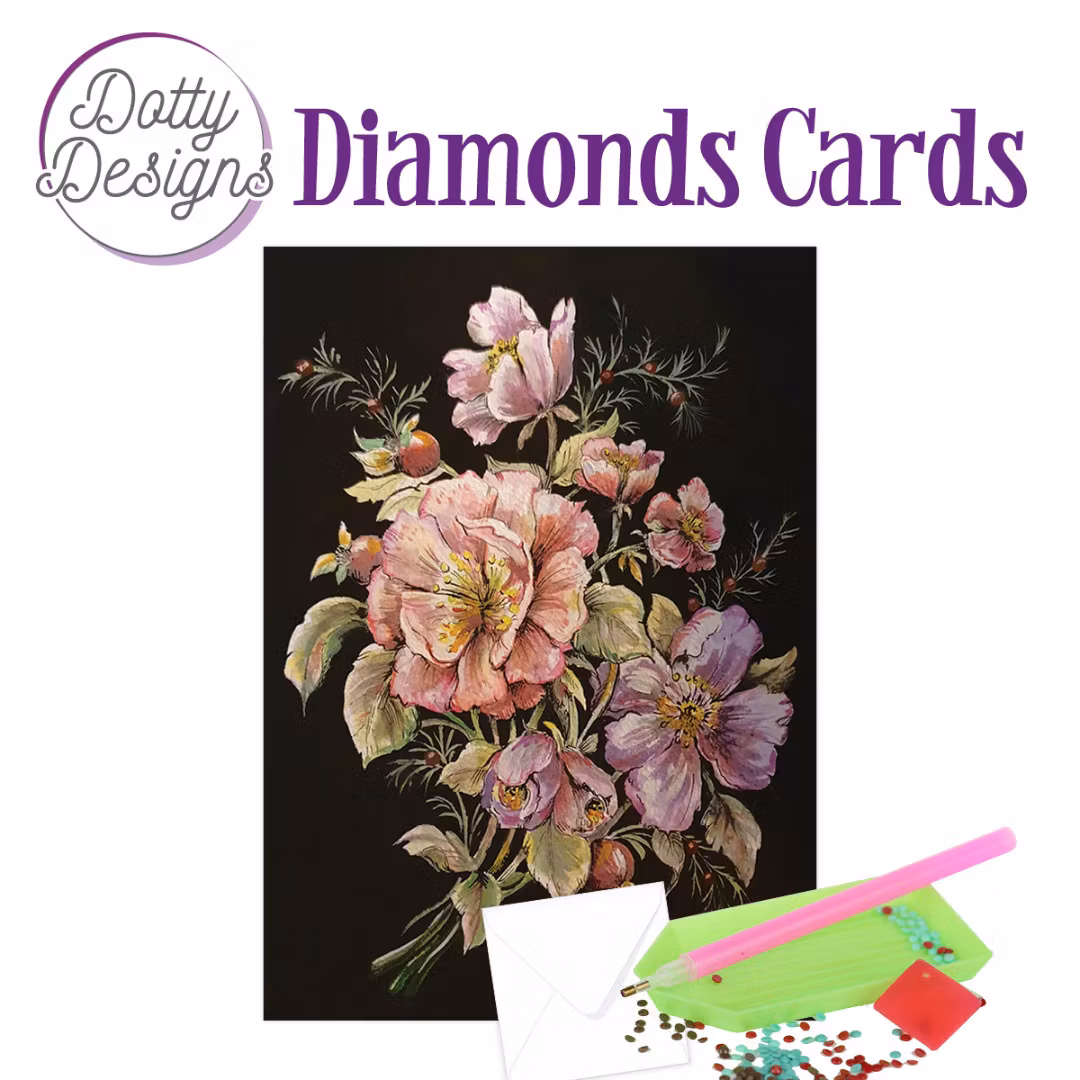 I dessa Diamant vykortskit från Dotty Designs hittar du all material för ett kort med delar av Diamond Painting på det. Varje paket innehåller ett förtryckt kort, kuvert, diamanter, penna, duttmassa/vax och tråg.